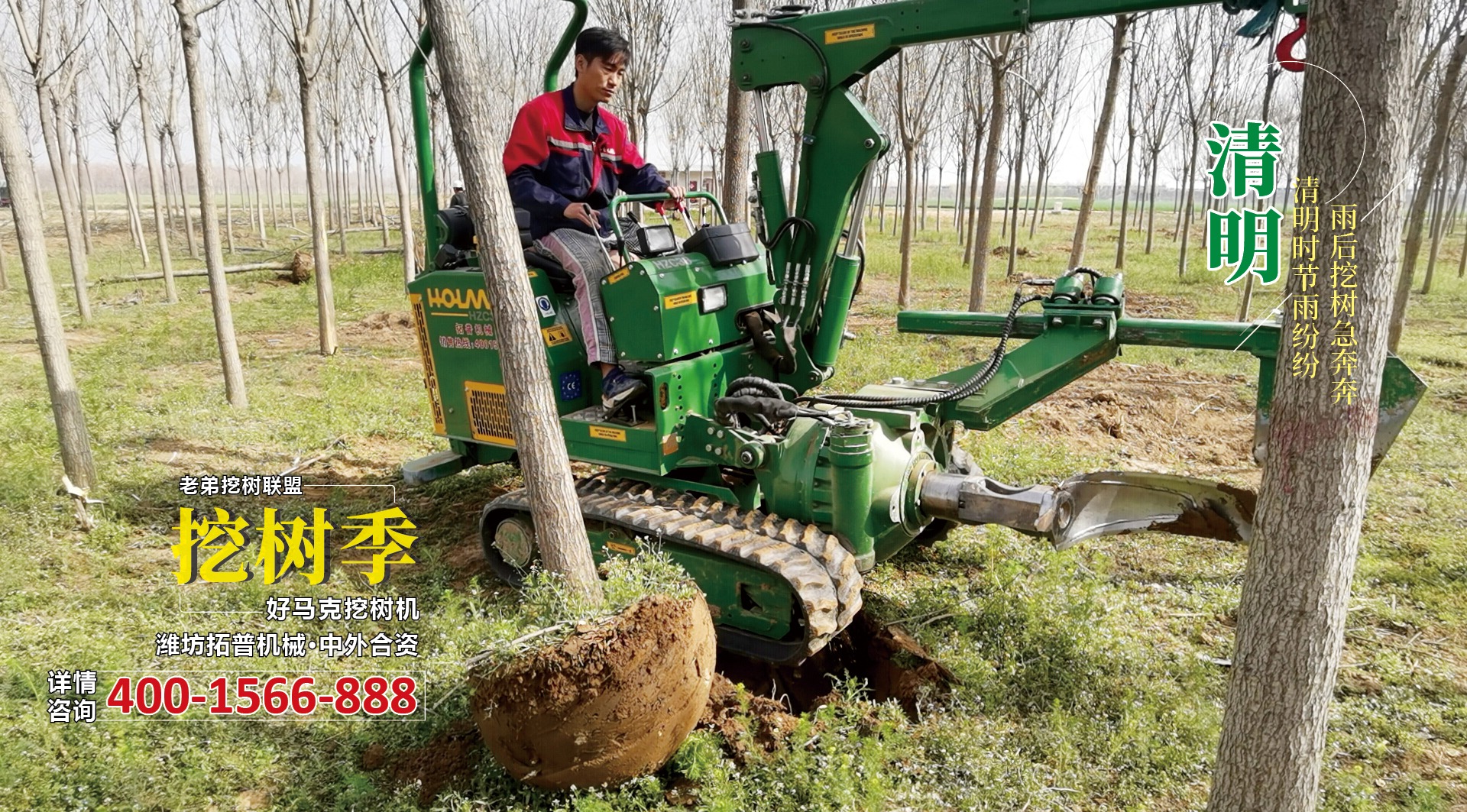 清明时节正值春雨降临,春雨淅沥沥地点醒了大地,唤醒了万物,一派春意盎然的景色。雨后土质松软,适合挖树,草莓软件视频机械老弟挖树联盟的小伙伴们近期邀约不断,奔忙于全国各地。有需要进行苗木移栽的朋友记得提前约哦!